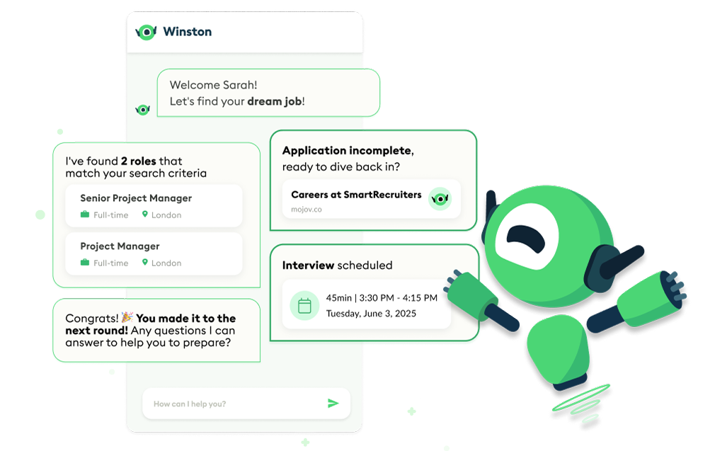 De l’intelligence IA de Winston à SmartOS, notre plateforme de gestion des talents, en passant par nos modules complémentaires, tout est conçu pour aider vos équipes à attirer, sourcer et recruter les bonnes personnes au bon moment.